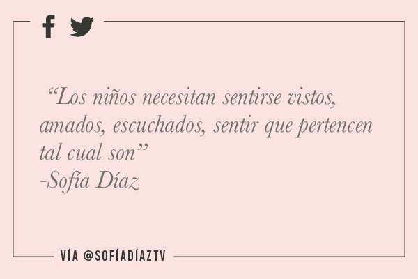 Los niños necesitan saberse vistos, amados y escuchados, necesitan sentir que tienen un lugar en el mundo, que está bien SER ELLOS, ser quienes vinieron a ser, no quienes nosotros queremos que sean.